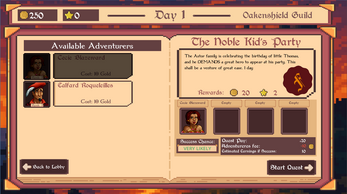 Strategic Guild Management: Hire adventurers, set their initial rates, and dispatch them on quests!